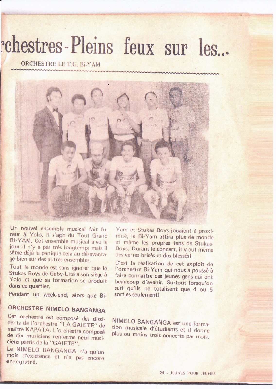 Ci-dessous nous publions deux coupures d’archive de Jeunes Afrique des années 60 et 70 qui annoncent les noms des jeunes orchestres ci-après :