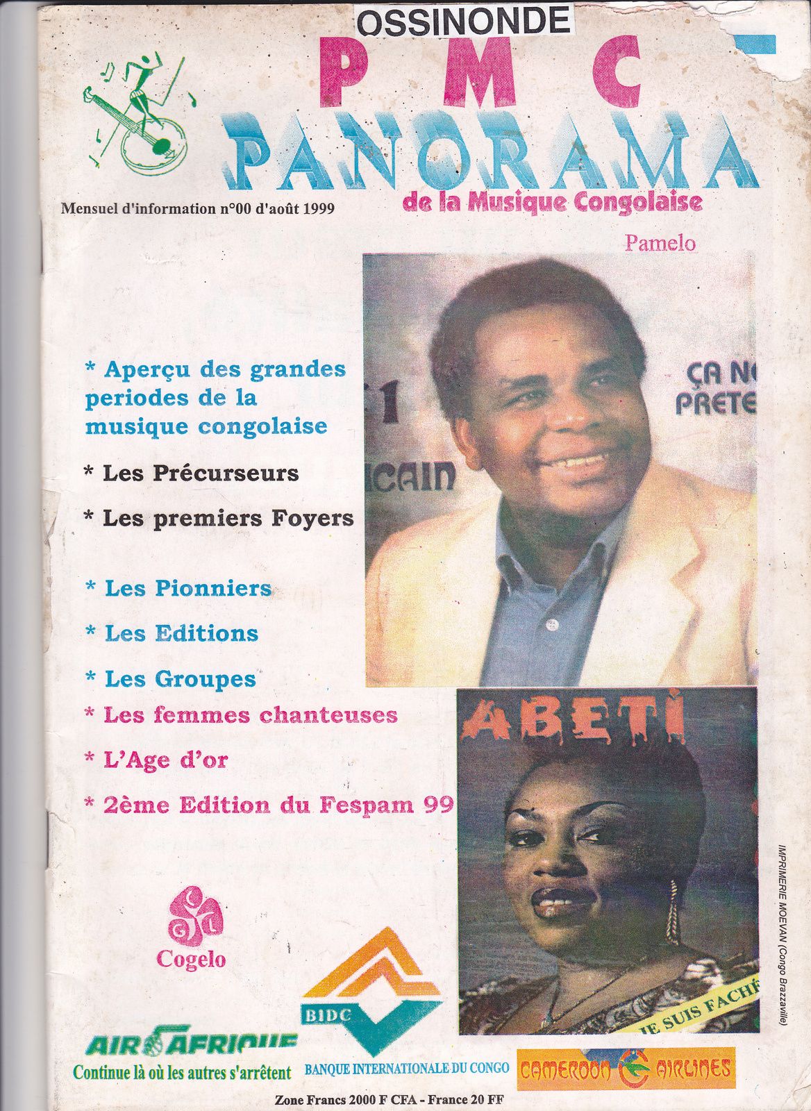 Mieux vaut tard que jamais. J’ai le plaisir de te faire parvenir ce numéro spécial « Panorama de la musique congolaise » que j’avais réalisé (Rédacteur en chef) avec la collaboration de mon ami Auguste Fall (Directeur de production), à l’occasion de la tenue en 1999 de la 2ème édition du Festam (Festival Panafricain de Musique).